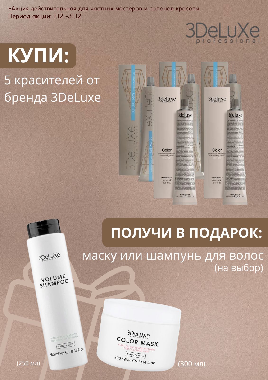 ШАМПУНЬ или МАСКА в подарок, при покупке 5 красителей 3DeLuxe
