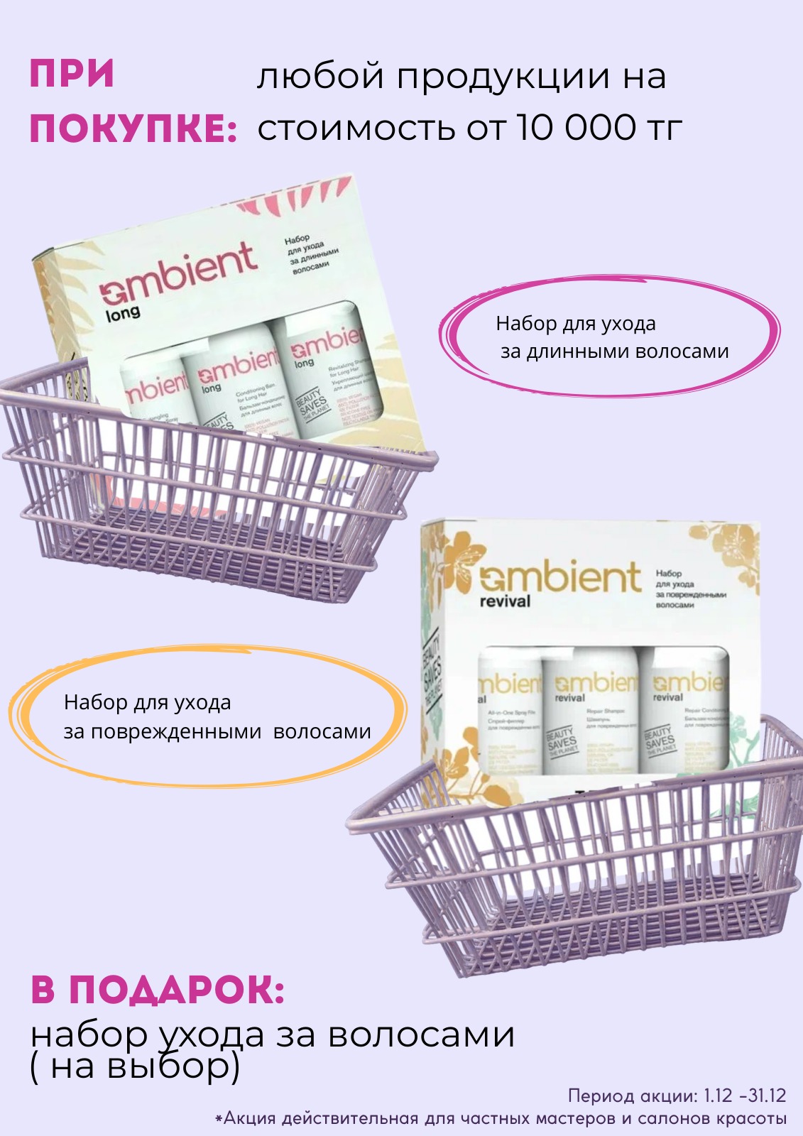 При покупки ЛЮБОЙ продукции на сумму от 10 000 тг, НАБОР ДЛЯ УХОДА ЗА ВОЛОСАМИ в подарок