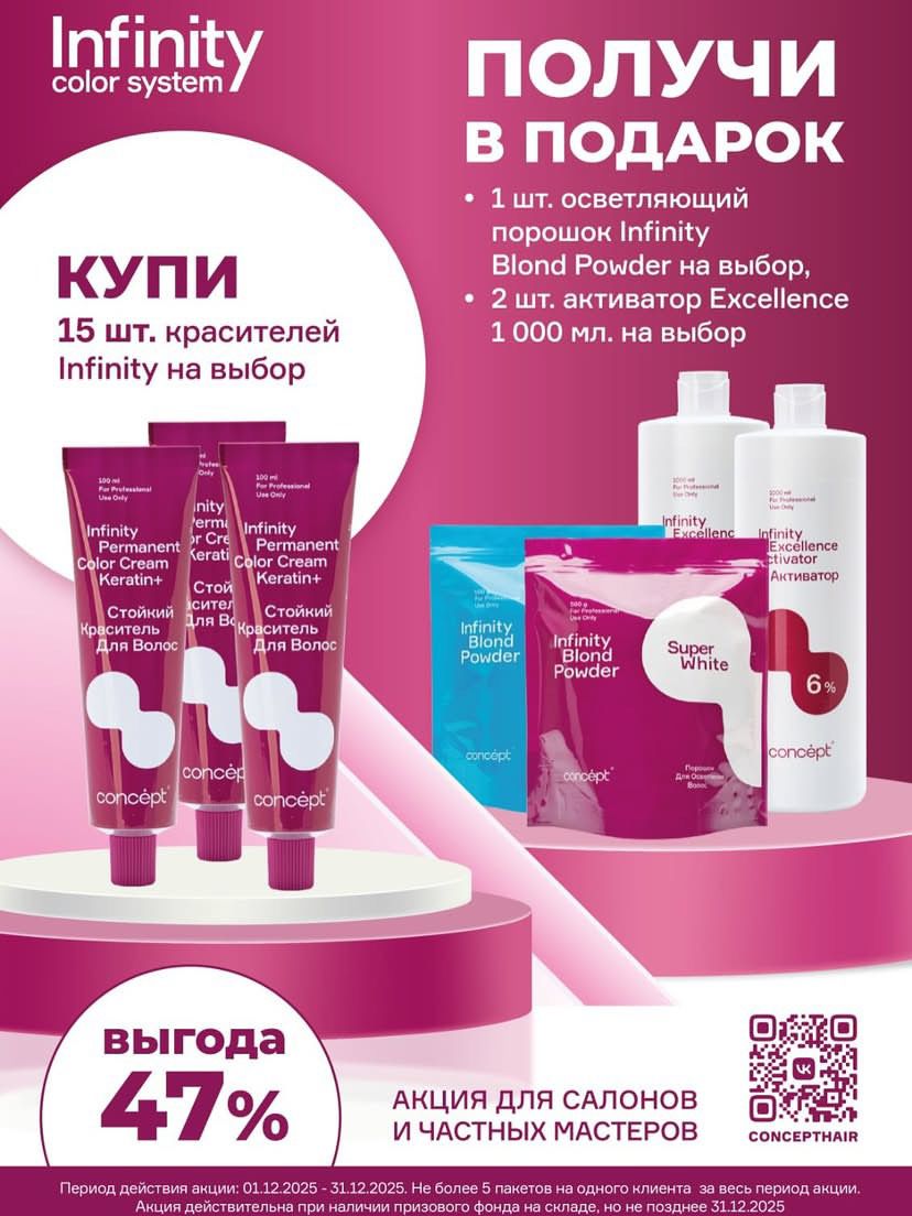 ОСВЕТЛЯЮЩИЙ ПОРОШОК и АКТИВАТОР для окрашивания В ПОДАРОК, при покупке 15 красителей от бренда Infinity