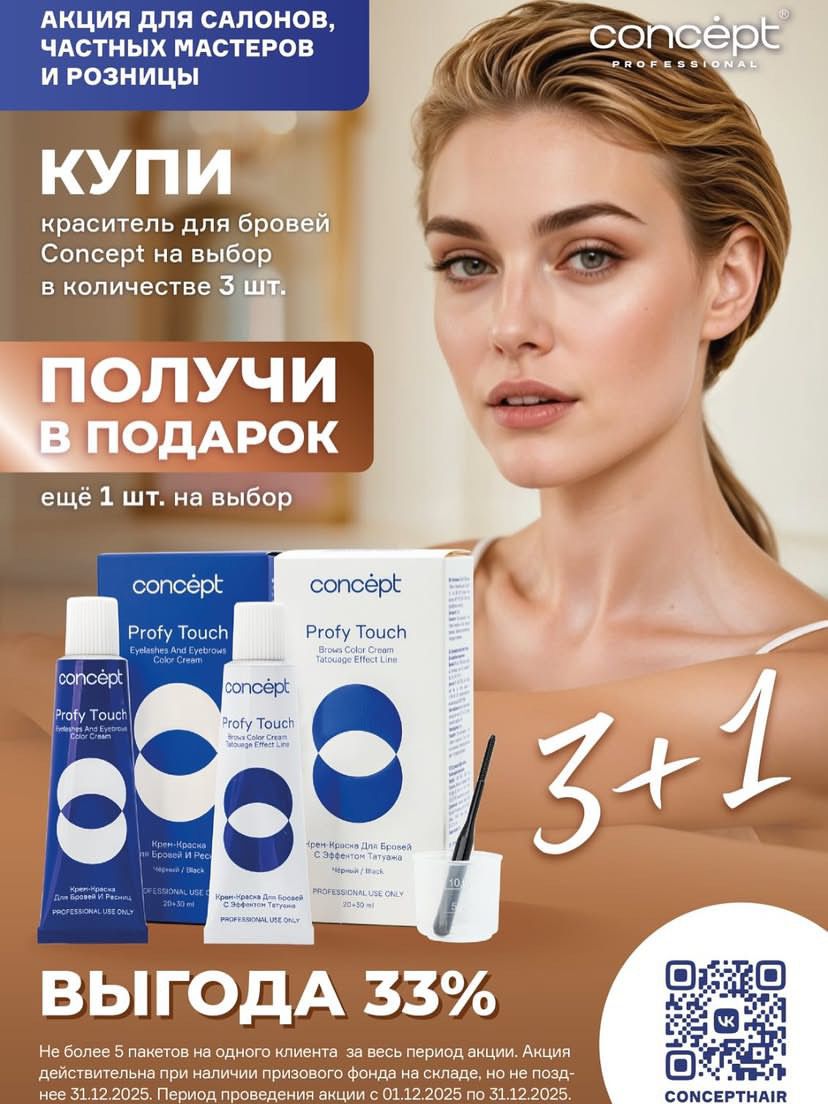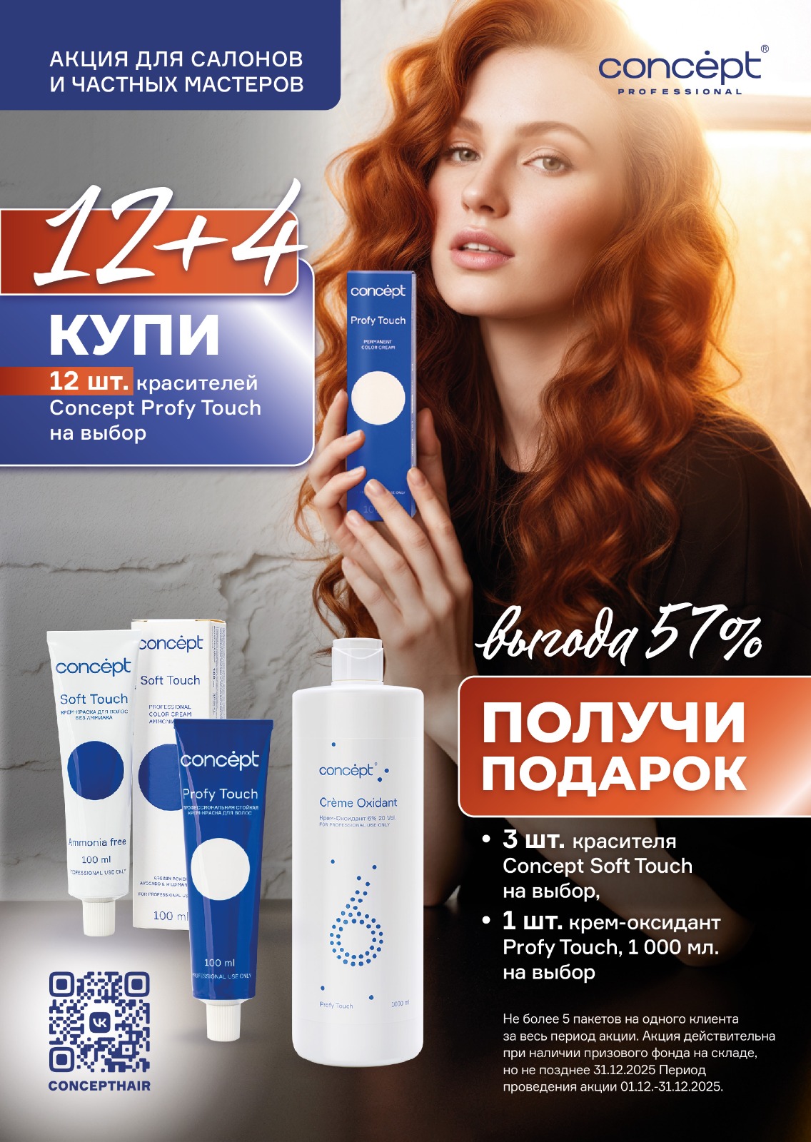 12+4: купи 12 красителей от бренда Concept, получи в подарок: крем-оксидант ил 3 красителя Concept Soft touch