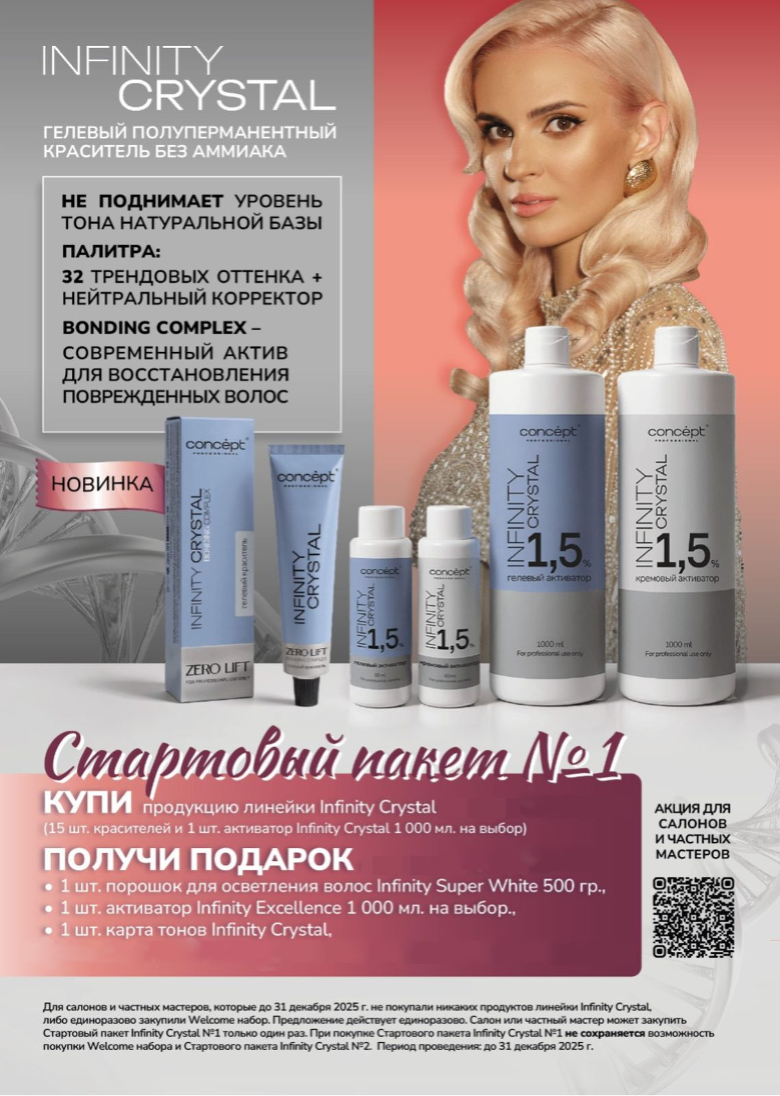 5+1: КУПИ 5 красителей Infinity Crystal и получи В ПОДАРОК: любой активатор 1,5% ( 1000мл)