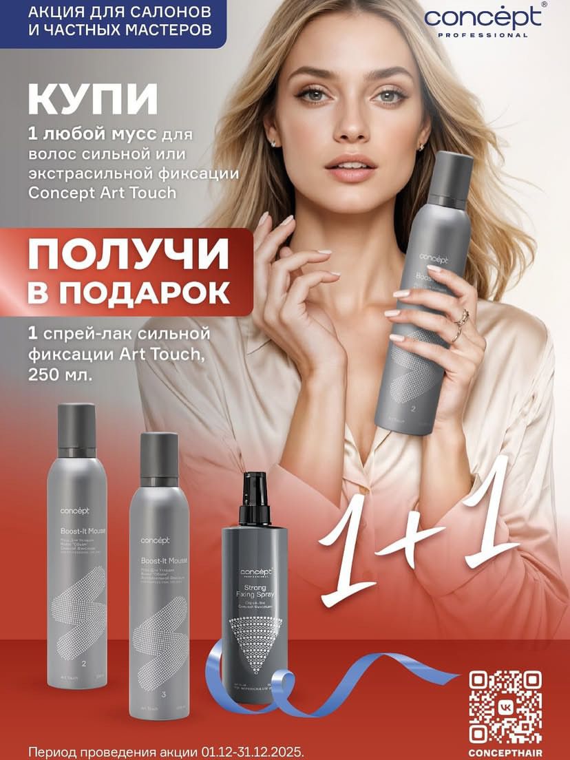 1+1: Купи любой мусс от бренда Concept, получи в подарок: 1 спрей для экстрасильной фиксации