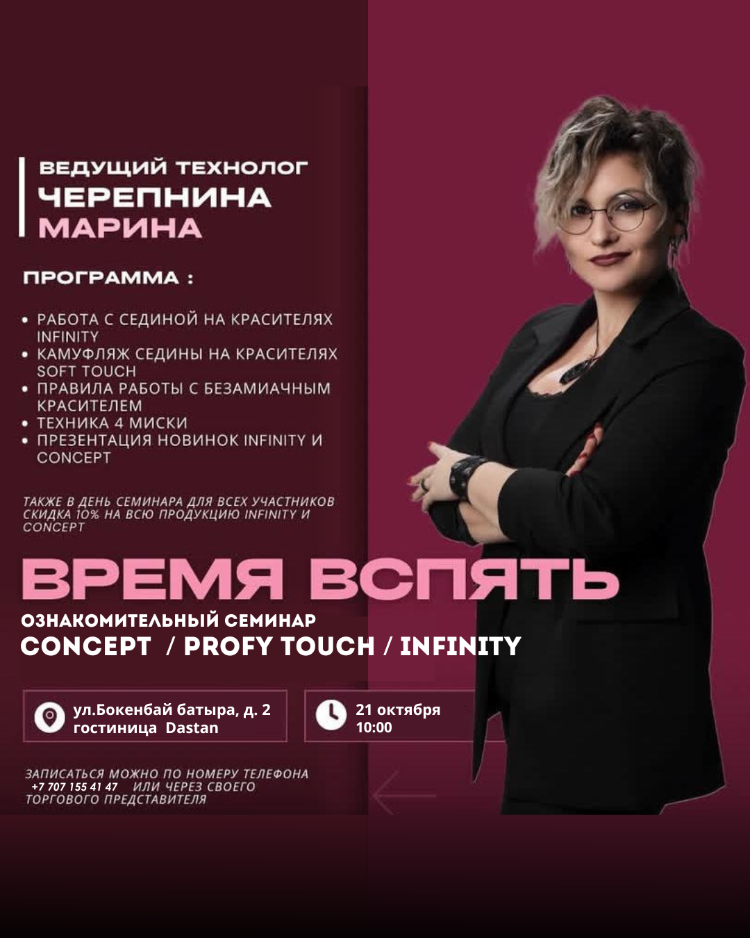 Для участников семинара скидка -10% на всю продукцию Concept/Infinity